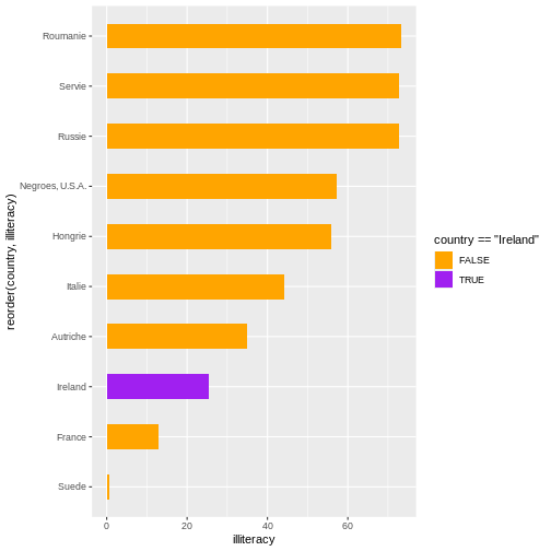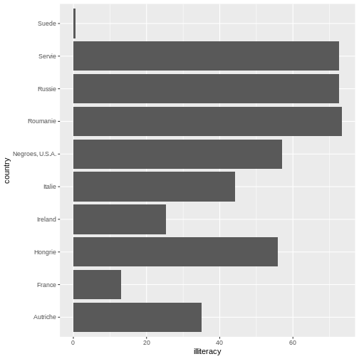 y = reorder(country, illiteracy))) +