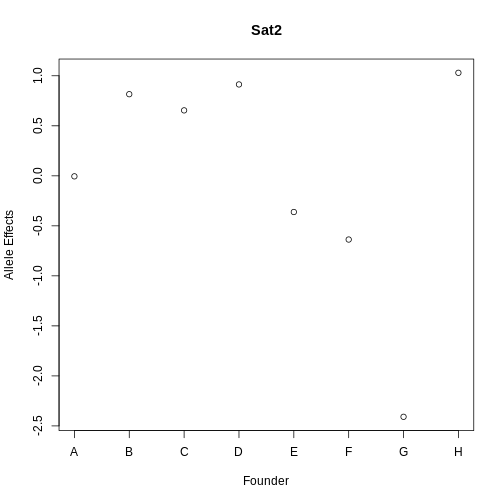 plot(gene_lod$coef[1:8],xaxt = "n", main = "Sat2", xlab = "Founder",