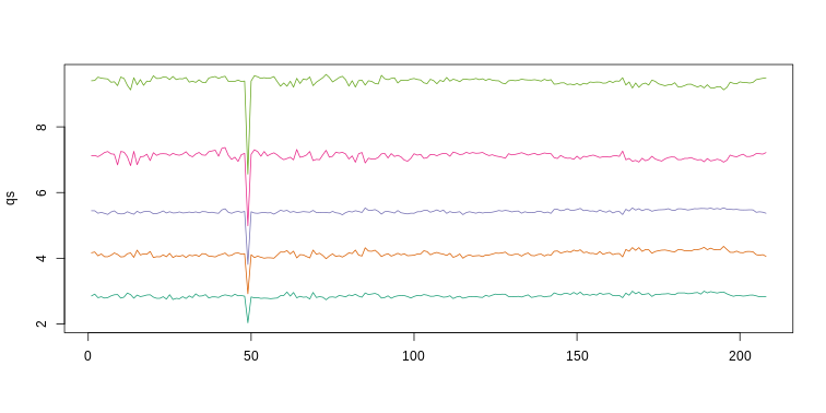 qs <- t(apply(ge,2,quantile,prob=c(0.05,0.25,0.5,0.75,0.95)))