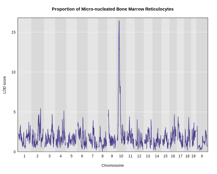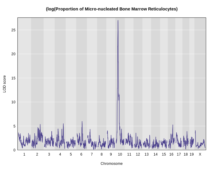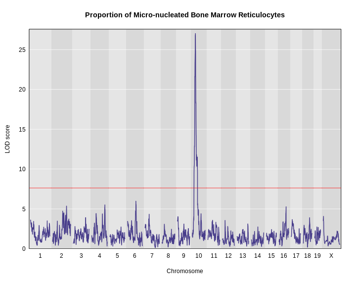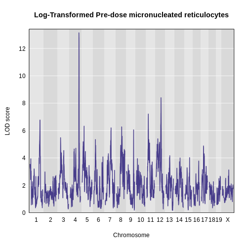 pre.prop.mn.ret. Since you’re using all samples, the scan will take longer. You will also need to add the benezene concentration to the covariates. (Hint: setindexto the column index inpheno.) - Which chromosome has the highest peak? Use