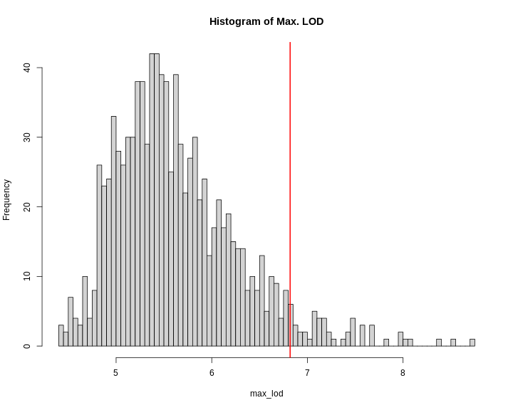 pre.prop.mn.retinpheno. Does it look like it should be log transformed? If so, add a column tophenothat contains the log ofpre.prop.mn.ret. - Perform a genome scan using all samples on the column