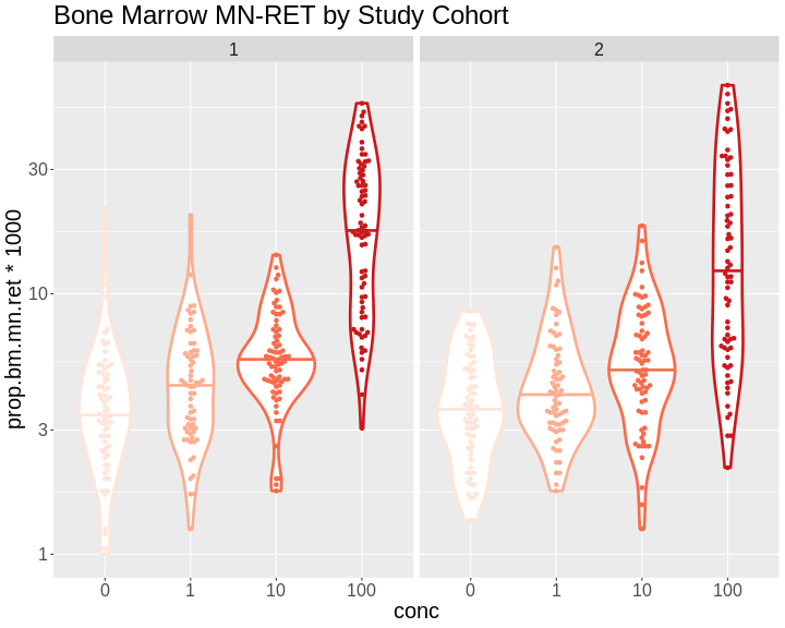 proportion of micronucleated reticulocytes in bone marrow versus the