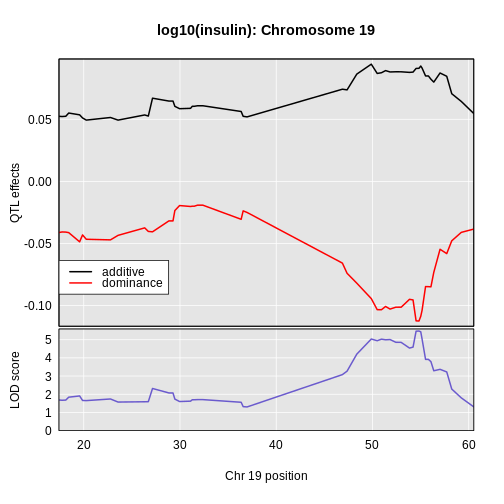 For example, we could get inferred genotypes at the chr 19 QTL for the insulin phenotype (at 28.6 cM) as follows: