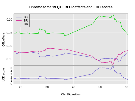 main = paste("Chromosome", chr, "QTL BLUP effects and LOD scores"),