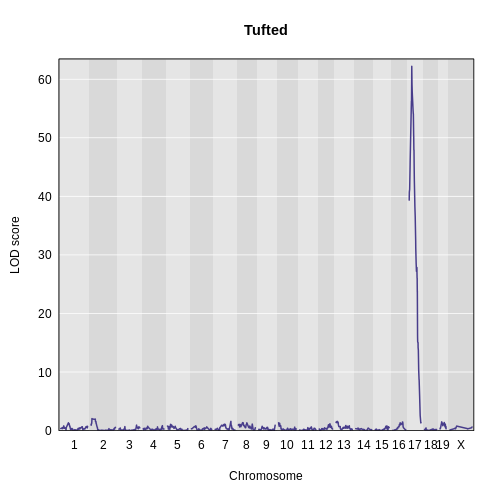 Map the tufted phenotype an determine if there are any tall peaks for this trait.