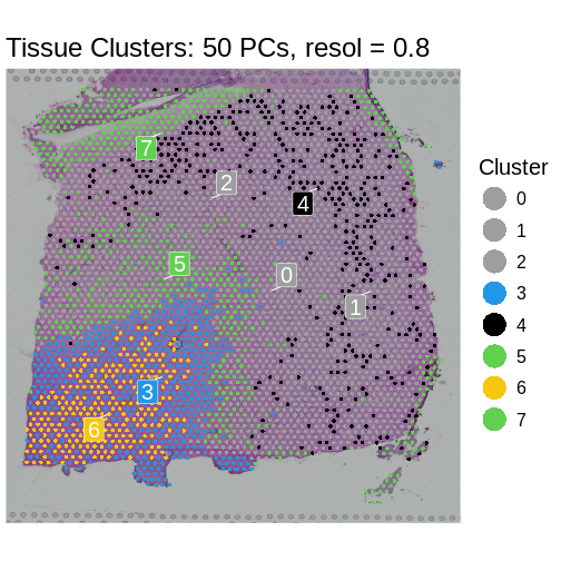 ggtitle(label = "Tissue Clusters: 50 PCs, resol = 0.8") +